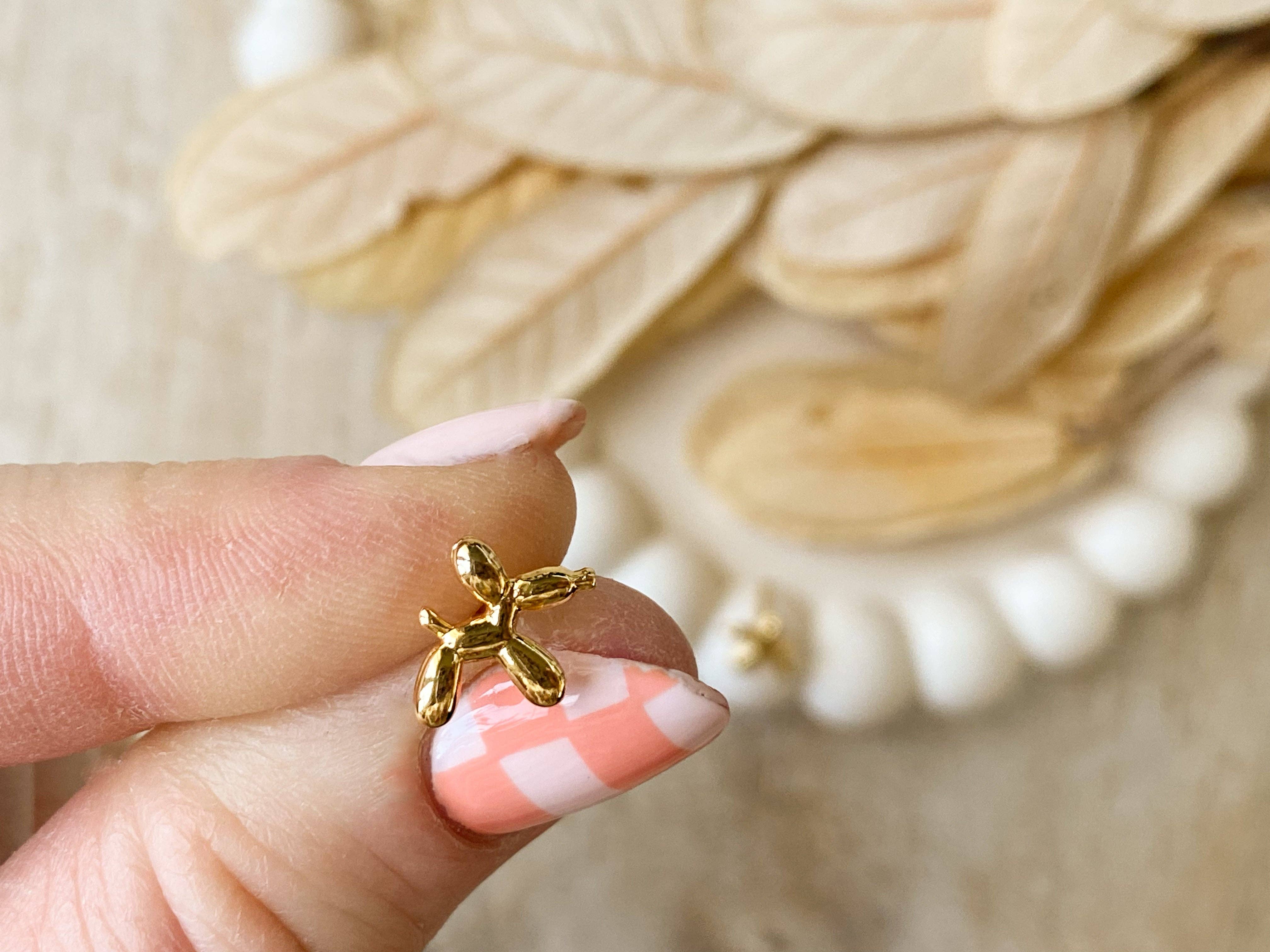 The cutest 14K gold plated balloon doggie studs. Measures approx. 11 by 10 mm. Nickel free. Check out our balloon dog necklace too!