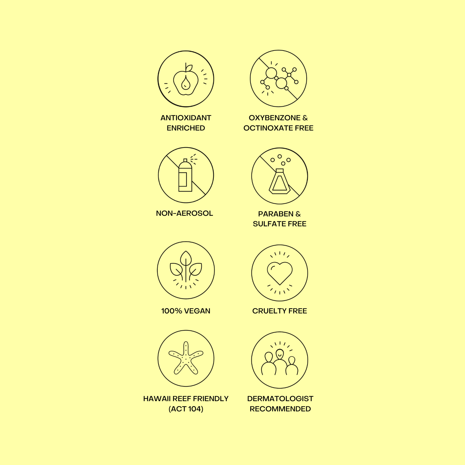 Our SPF 30 spray is cruelty-free, vegan, and Leaping Bunny Certified. Formulated without parabens, sulfates, oxybenzone, and octinoxate. It's Hawaii reef safe sunscreen, and eco-friendly. Enriched with antioxidants, it protects and nourishes your skin.