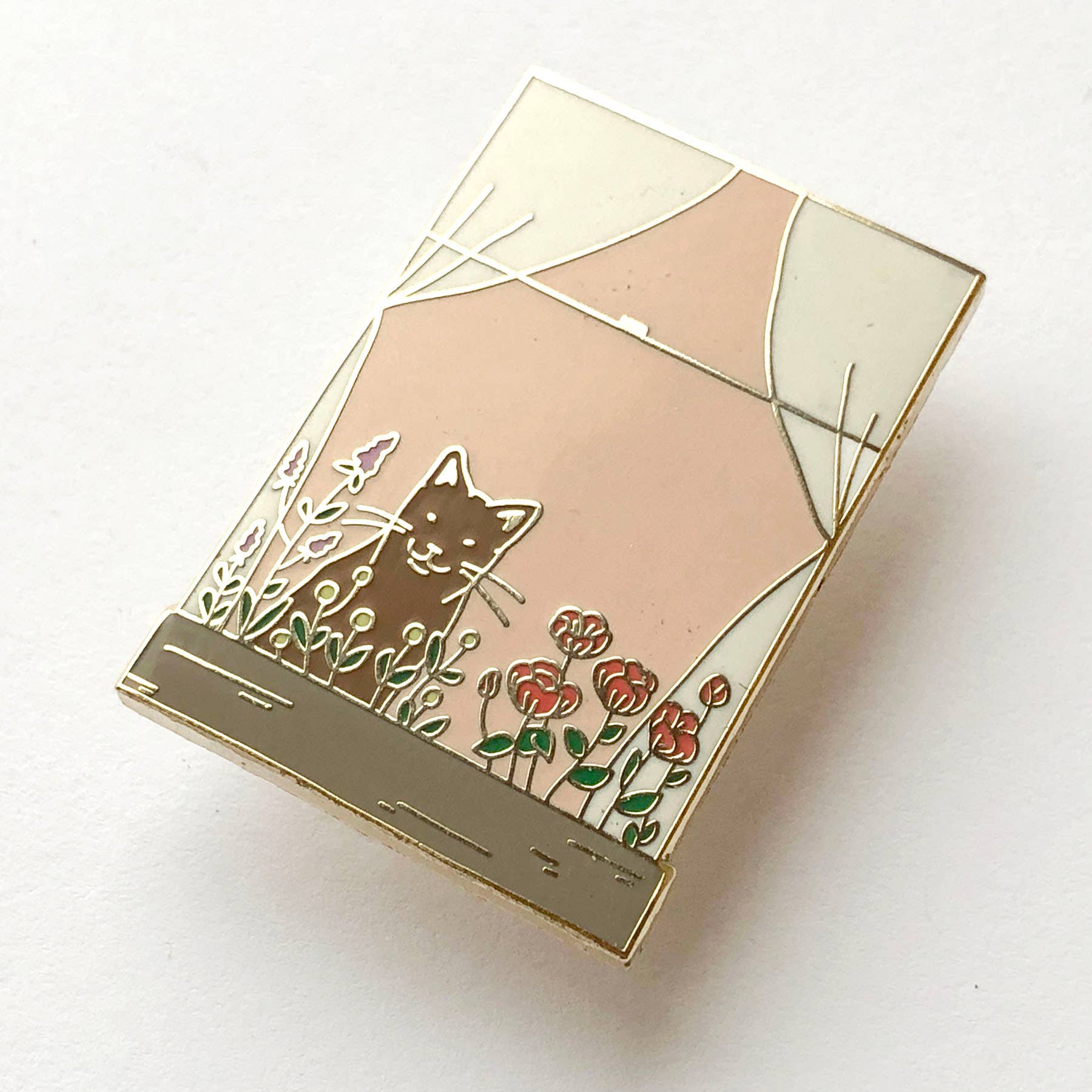 Cat in the Window - hard enamel pin. 1.5 inch tall.