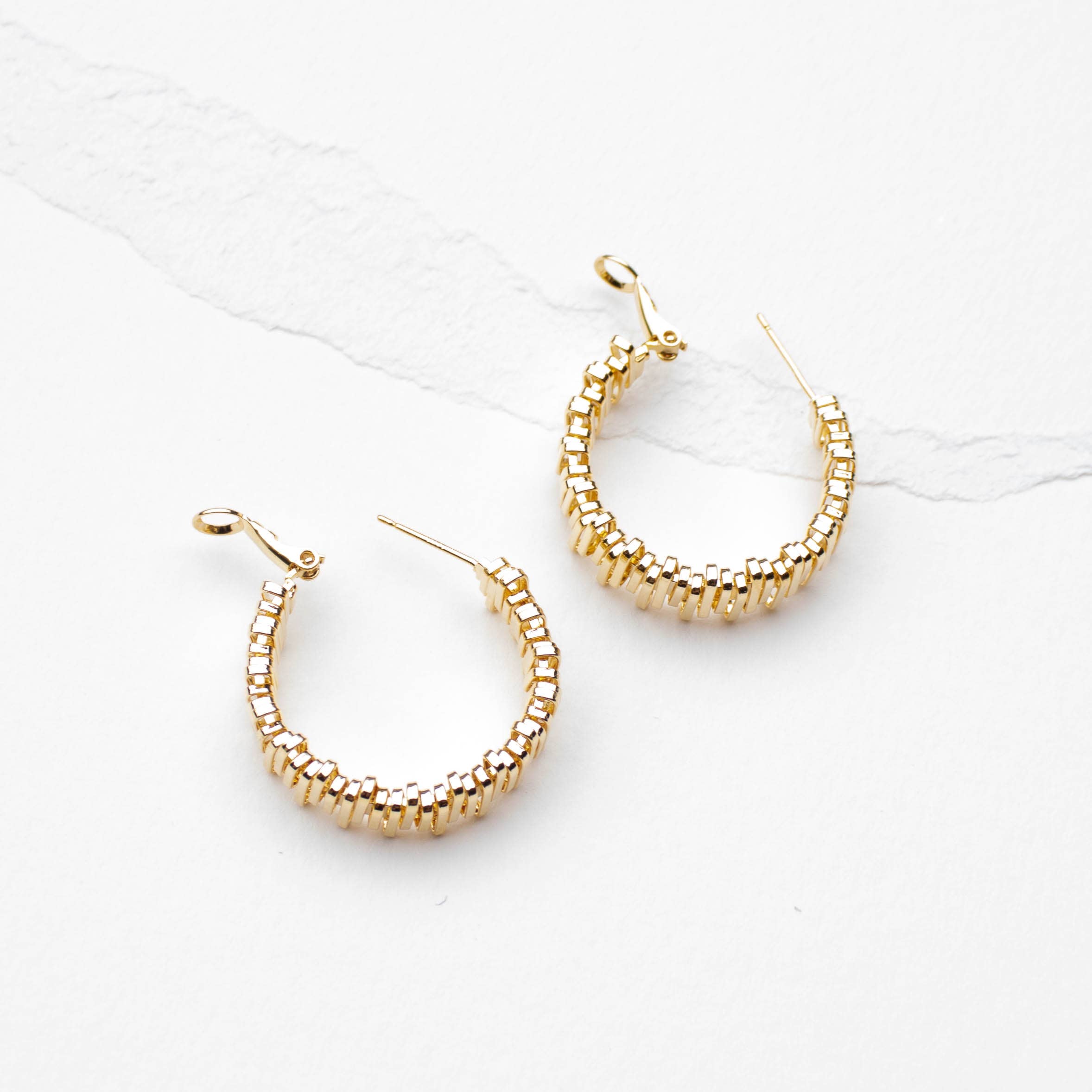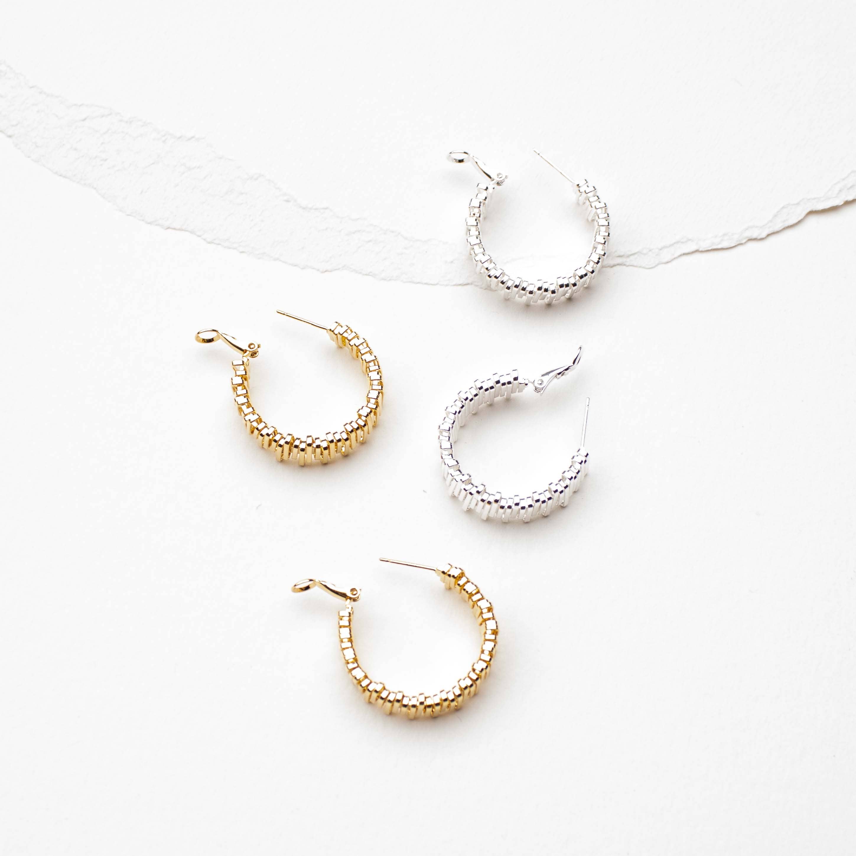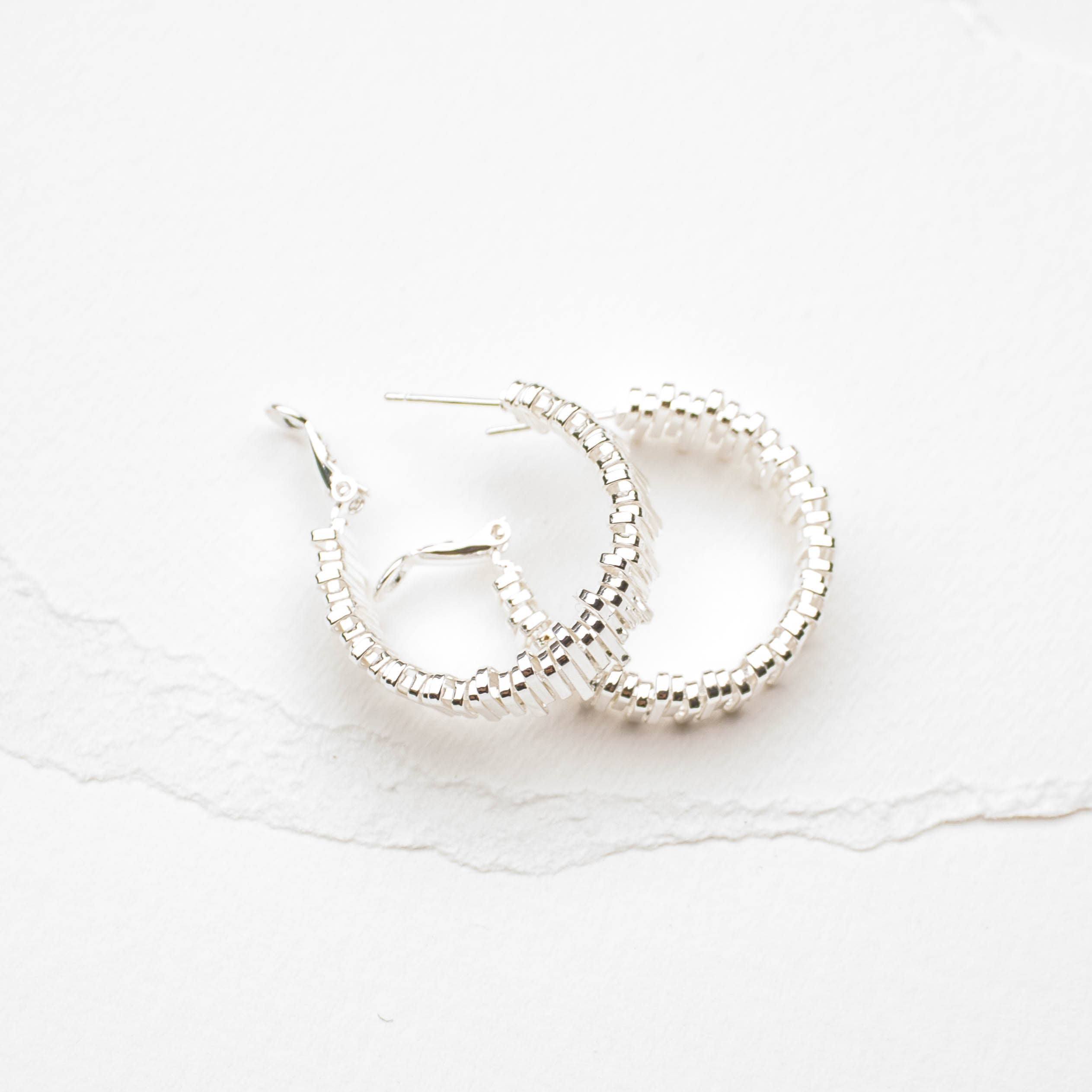 Elevate your accessory game with these modern geometric hoop earrings, available in both gold and silver finishes. Featuring a unique interlocking bar design, these hoops offer a bold yet elegant statement, perfect for everyday wear or special occasions. Lightweight and easy to style, they add a contemporary edge to any outfit.