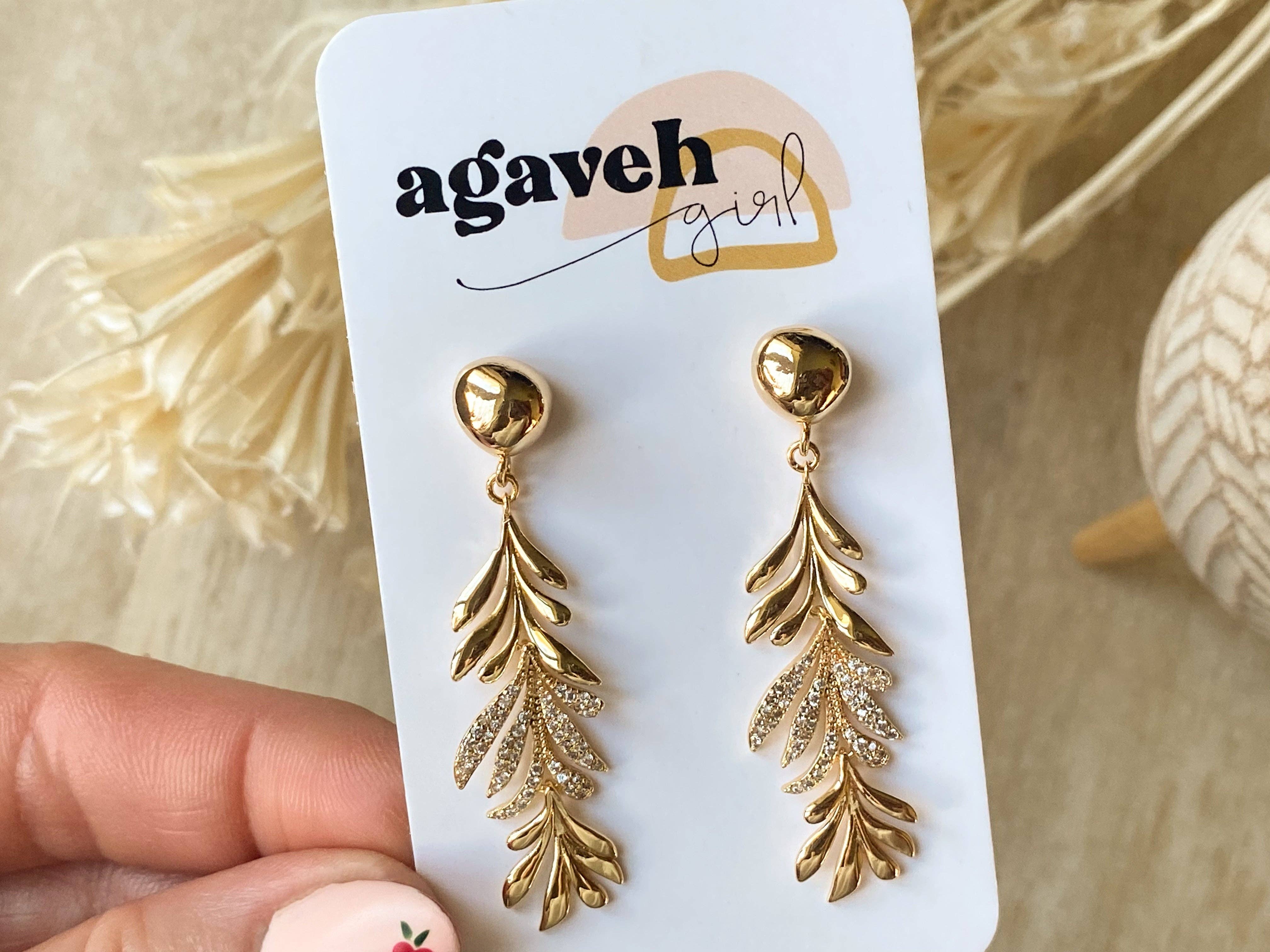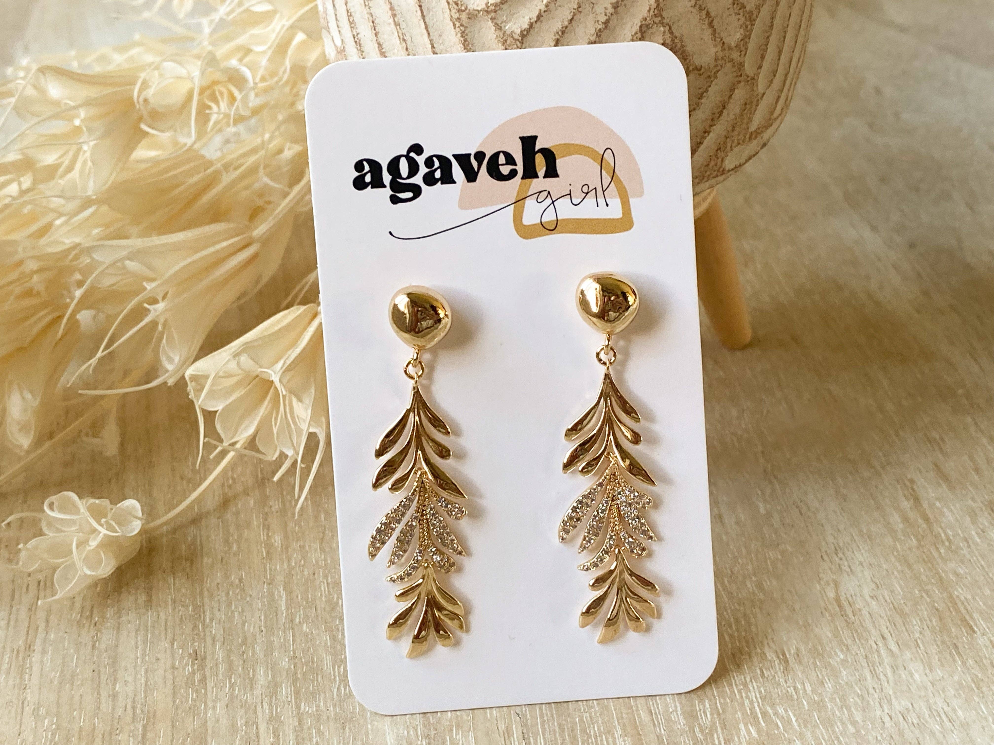 Delicate and radiant, these gold leaf dangle earrings bring a touch of nature’s elegance to your everyday look. Crafted with intricate leaf detailing, they sparkle with dainty cubic zirconia accents and are finished in luxurious 14K gold plating. Lightweight and eye-catching, they’re the perfect blend of organic charm and refined sparkle.