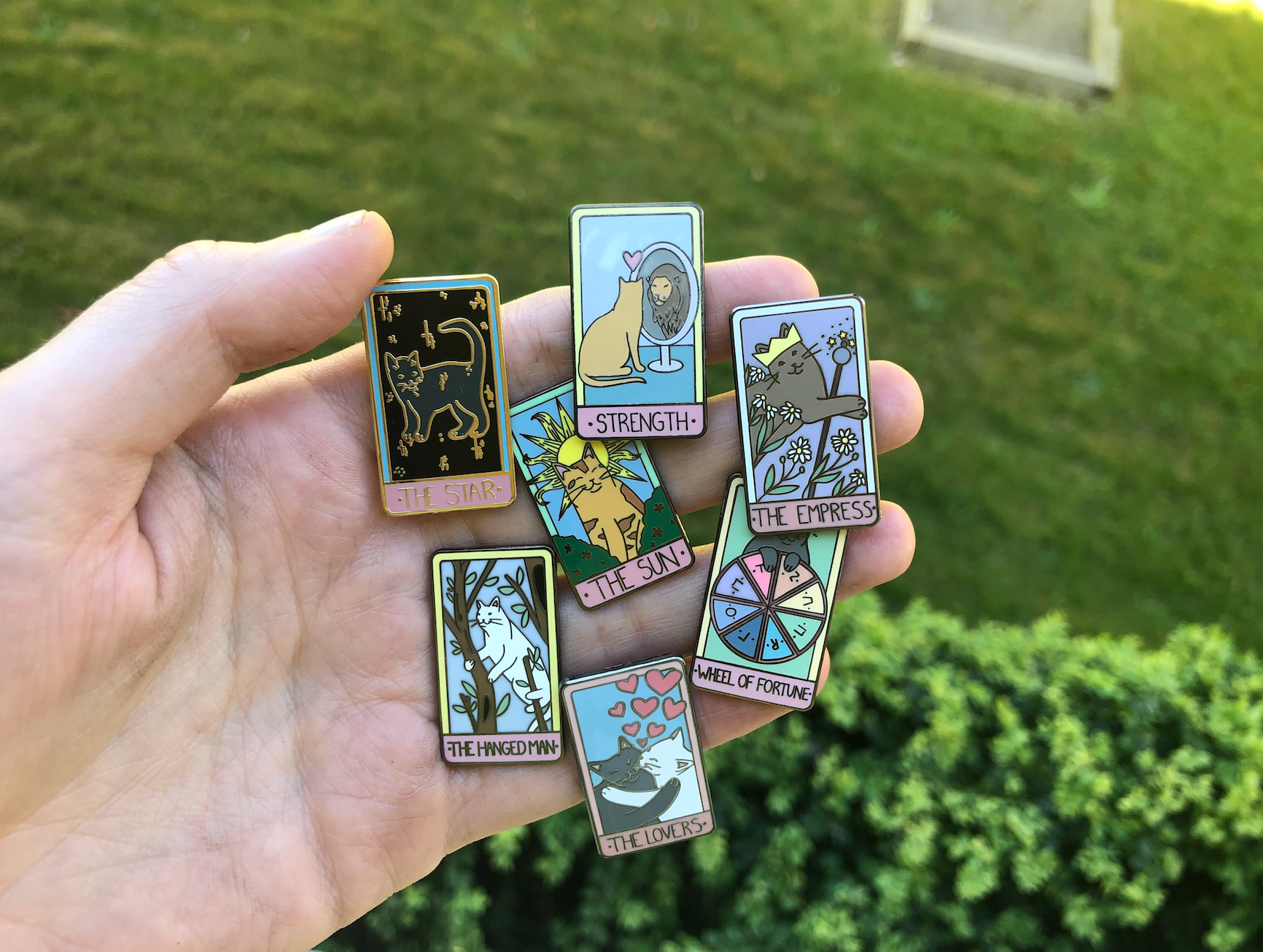 A cat interpretation of the "the tower" tarot card, hard enamel pin. Stands .75 inches tall.